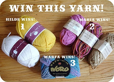 I'll be contacting the winners shortly, and once I have your contact information I'll send some lovely yarn your way.